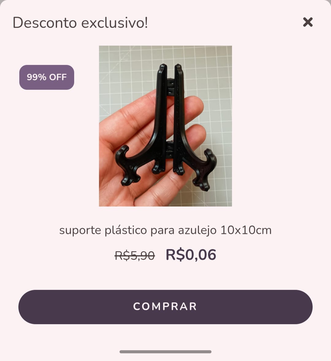 Pessoal, disponibilizei 6 suportes de azulejo no site, por apenas r$0,06 para quem colocar um azulejo 10x10 no carrinho.